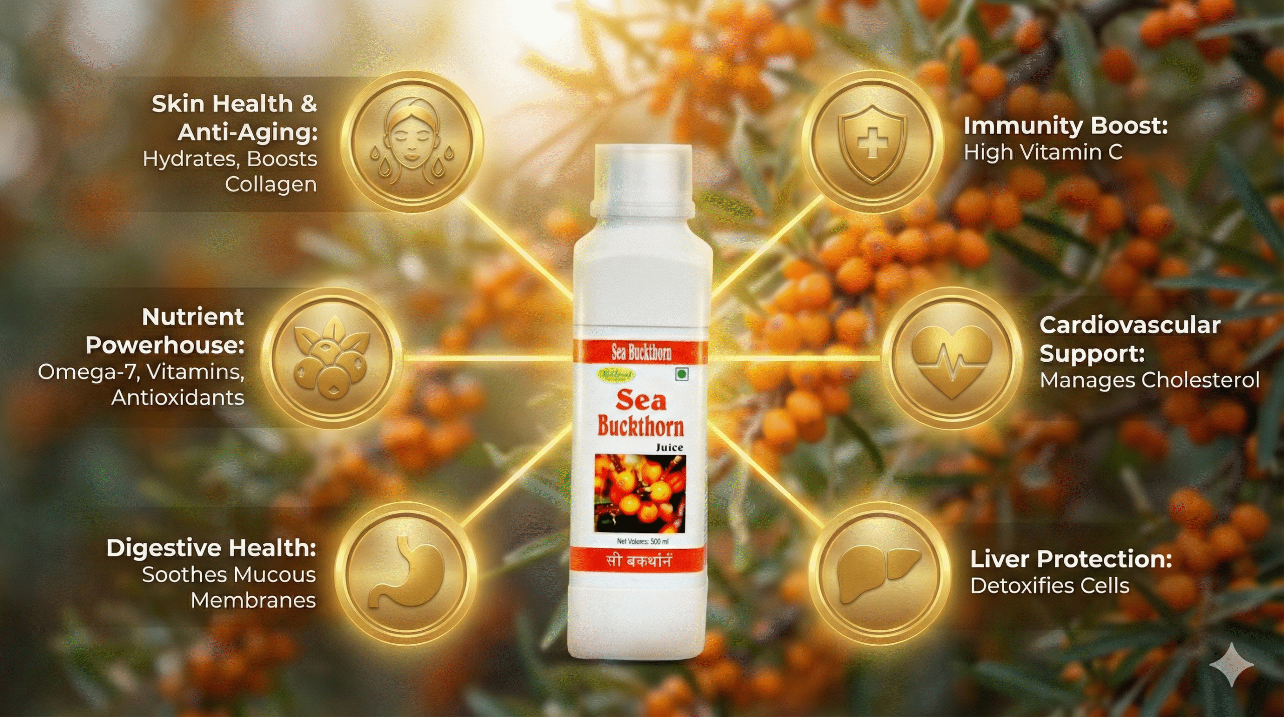 Sea Buckthorn pulp juice with no sugar added.